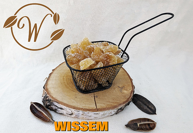 Gesuikerde gember is een heerlijke zoete lekkernij die wordt gemaakt door stukjes gemberwortel te koken in suikersiroop en ze vervolgens te bedekken met kristalsuiker. Het resultaat is een pittig-zoete snack met een zachte en taaie textuur.